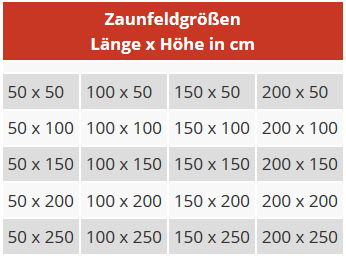 Die Zaunfelder sind mit einer Maschenweite von 2,5 cm × 10 cm erhältlich.